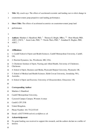 Handford, M. J., Bright, T. E., Mundy, P., Lake, J. P., Theis, N. and Hughes, J. D. (2025) My coach says: The effects of accelerated eccentric and landing cues to elicit change in countermovement jump propulsive and landing performance. Journal of Strength and Conditioning Research, 39 (6). e730-e741. ISSN 1064-8011
