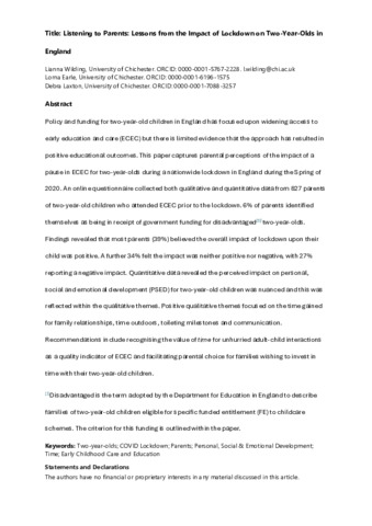 Listening to Parents The Impact of Lockdown on Two Year Olds in England_Submitted Version.docx - Submitted Version