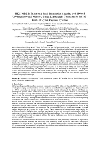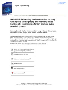 HKC-MBLT Enhancing SaaS transaction security with hybrid cryptography and memory-based lightweight tokenization for IoT-enabled cyber-physical system.pdf - Published Version