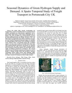 Okpako, O., Sumda, I. U., Anoh, K. and Rajamani, H.-S. (2025) Seasonal dynamics of green hydrogen supply and demand: A spatio temporal study of freight transport in Portsmouth city UK. In: 2025 IEEE 13th International Conference on Smart Energy Grid Engineering (SEGE), 18-20 August 2025, Oshawa, Canada.