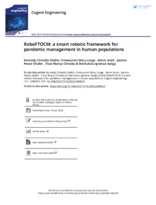 Okafor, K. C., Longe, O. M., Anoh, K., Okafor, I. P., Chinebu, T. I. and Ayogu, I. I. (2026) RoboFTOCM: a smart robotic framework for pandemic management in human populations. Cogent Engineering, 13 (1). pp. 1-30. ISSN 2331-1916